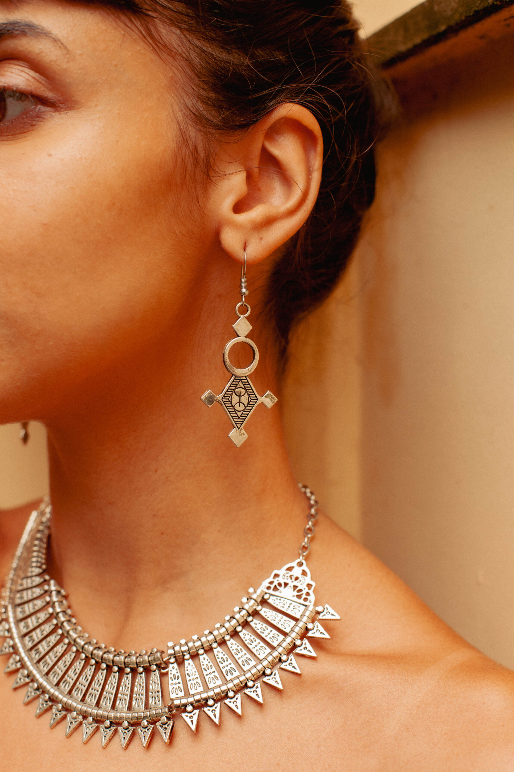 Colar grande com detalhes bereberes, feito commix de metais – conhecido como “prata Tuareg”